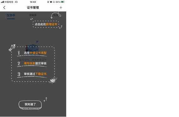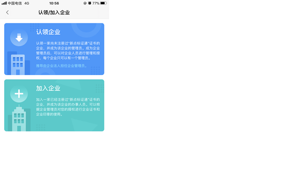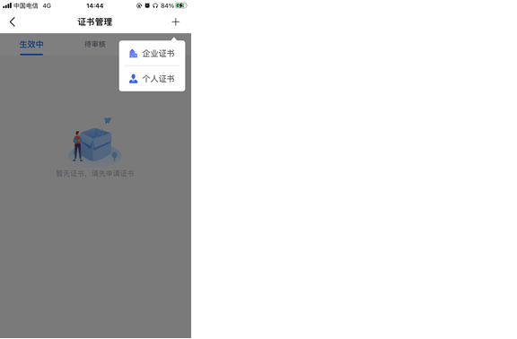 按照指引点击“+”号,可选择申领企业证书,见【图1】;